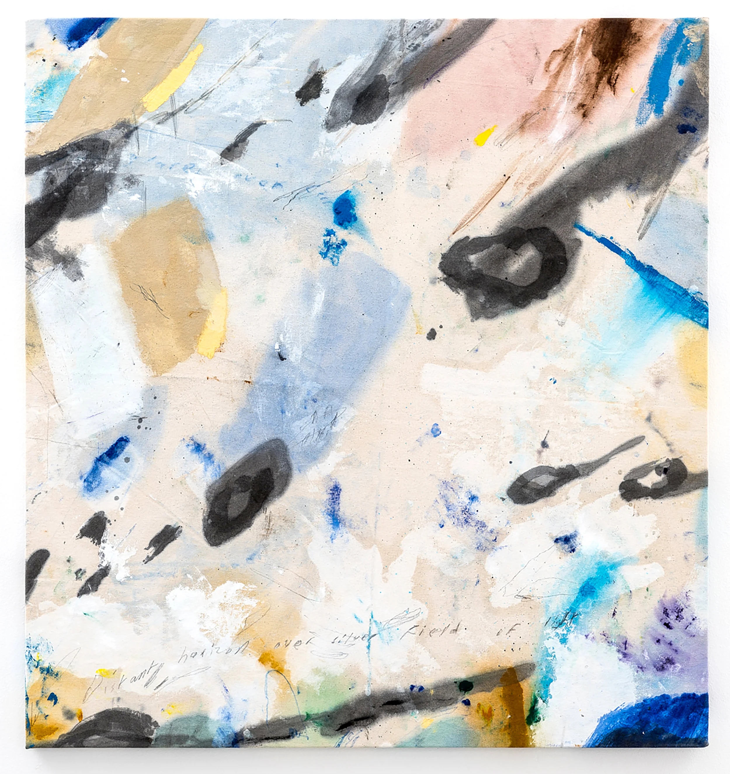 81cm x 76cm. Oil, acrylic, pencil, oil stick, pen and earth on canvas.