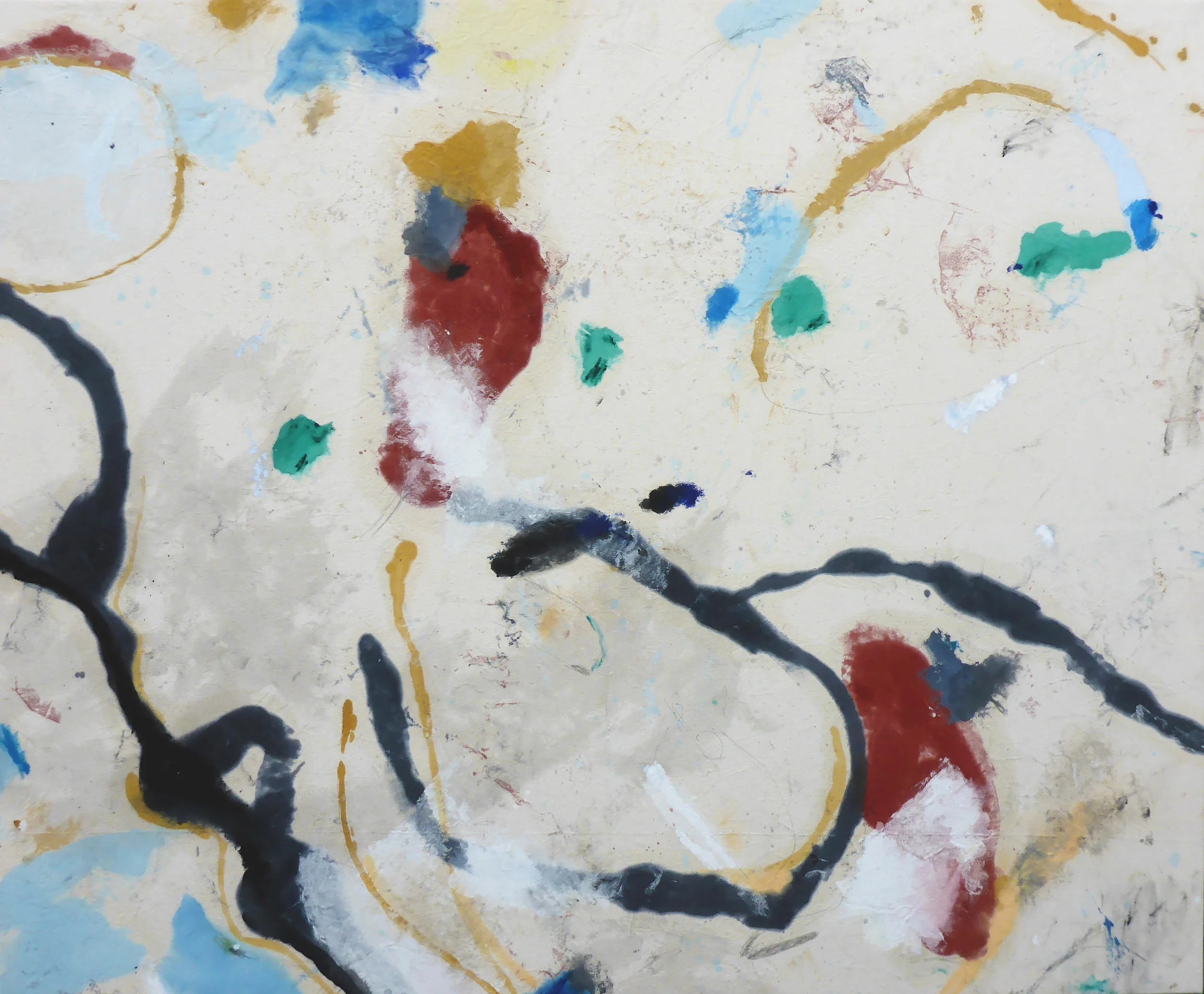 170 x 140.5 cm. Oil paint, Chinese ink, acrylic paint, enamel paint, oil stick, pencil, earth and masonry paint on canvas.