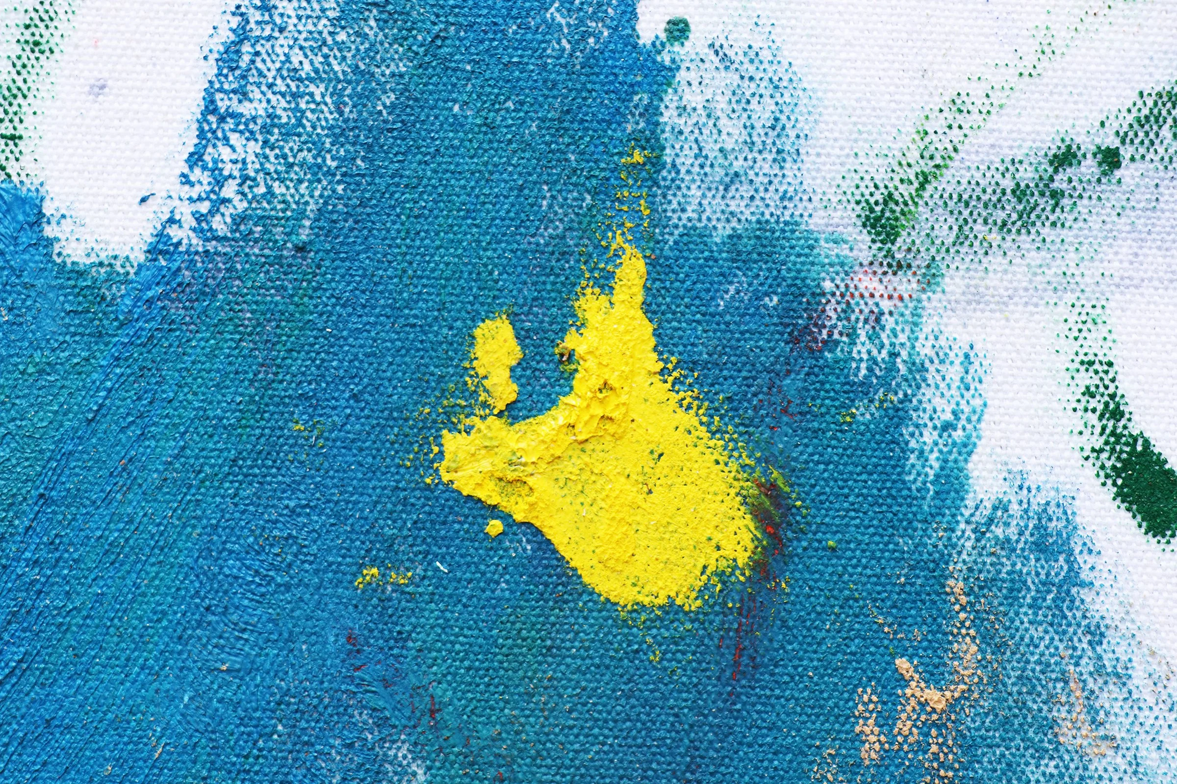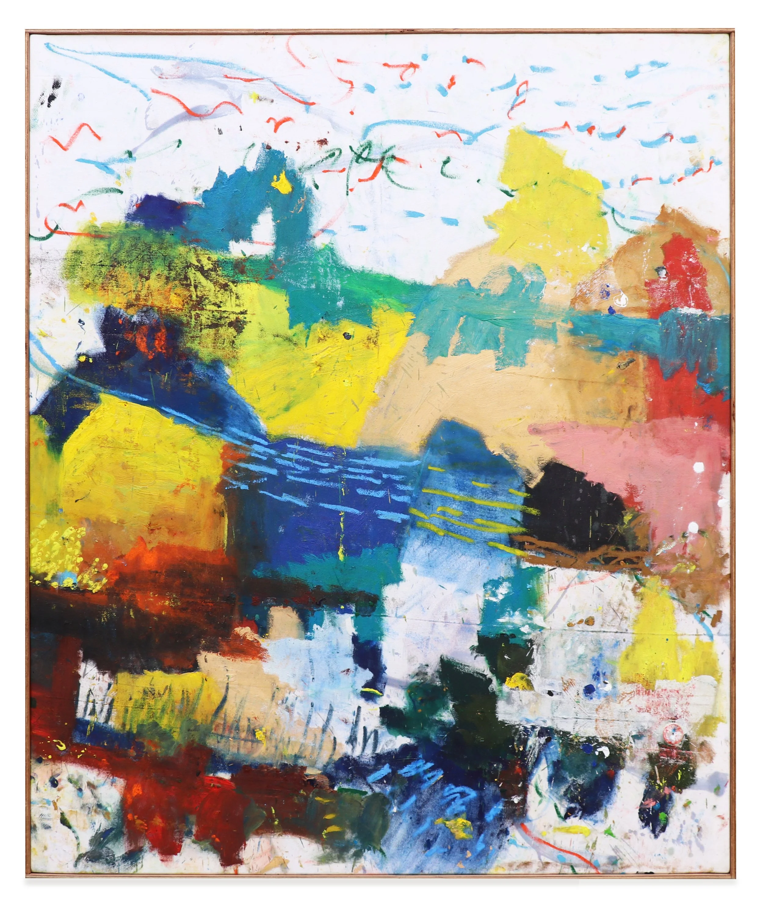 Oil, oil stick, marker pen, sand, dirt and found objects on canvas.